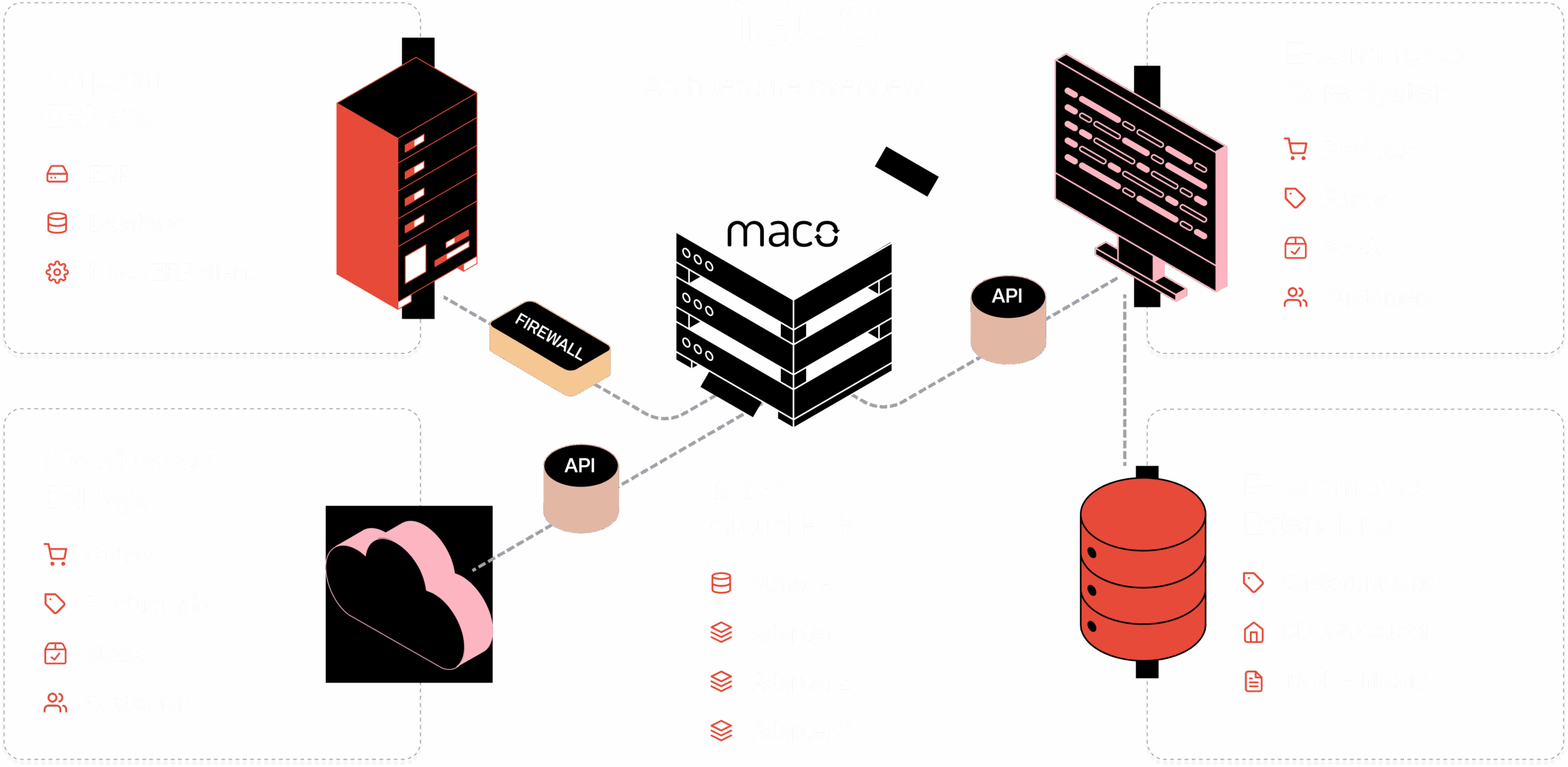 Vi sørger for en sømløs integrasjon mellom nettbutikken din og ERP-systemene dine, slik at alle viktige prosesser skjer automatisk. Dette inkluderer dataflyt for lagerstatus – med støtte for flere lager og lokasjoner – ordrenedlasting, produktopplasting og oppdatering, samt ordrehistorikk. I tillegg kan vi håndtere spesialpriser og kampanjer, betalings- og leveringsinformasjon, kundeinformasjon, betalingsbetingelser og ordrestatus. For butikker med ekstra funksjonaliteter tilbyr vi også løsninger for ordreplukk, klikk & hent, klikk & reserver, kategorier og varegrupper, samt refusjoner. Med våre integrasjoner kan du enkelt velge og skreddersy de funksjonene som passer best for din virksomhet.